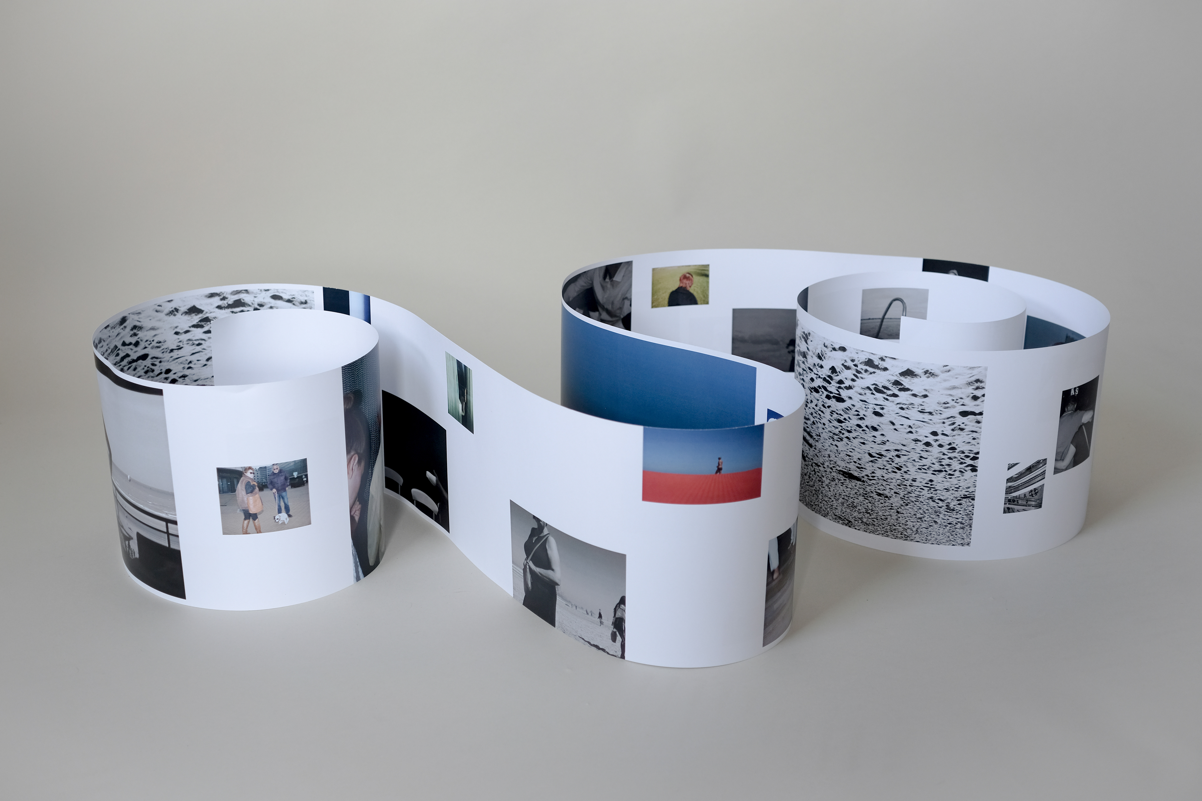 'Intervisuality' - 2019 - is a 3600 mm x 200 mm print created with a desire organise my personal archive of photography guided by visual connections, creating a playfulness in curation, as opposed to chronological Order. to begin, I printed 450 pictures and started finding visual connections between them and narrowed it down to 70 images.